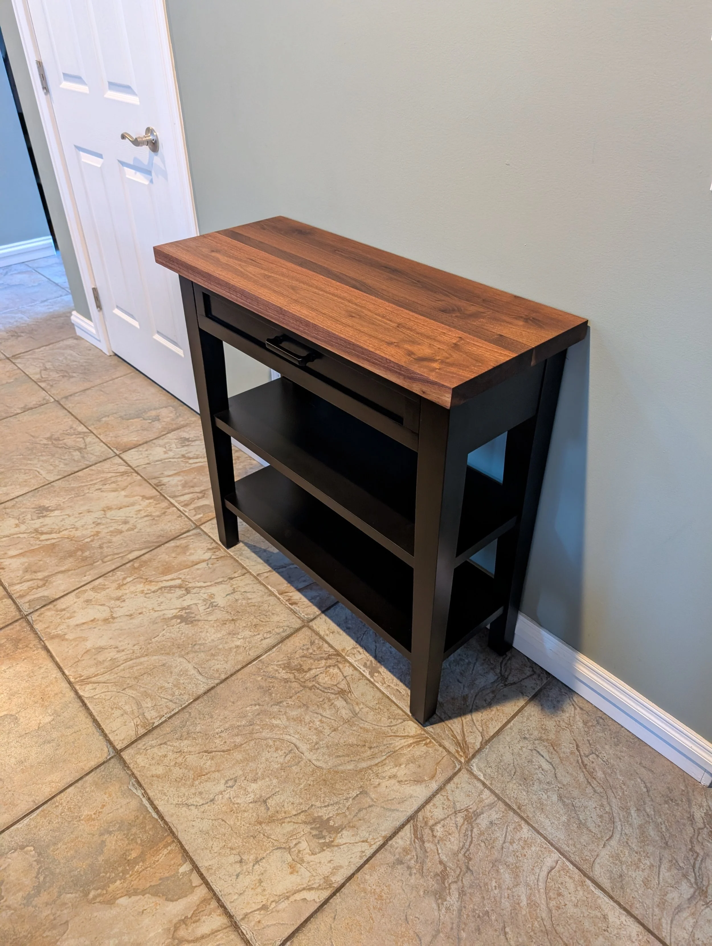 Handcrafted Black Walnut Entry Table with Tapered Legs and Drawer